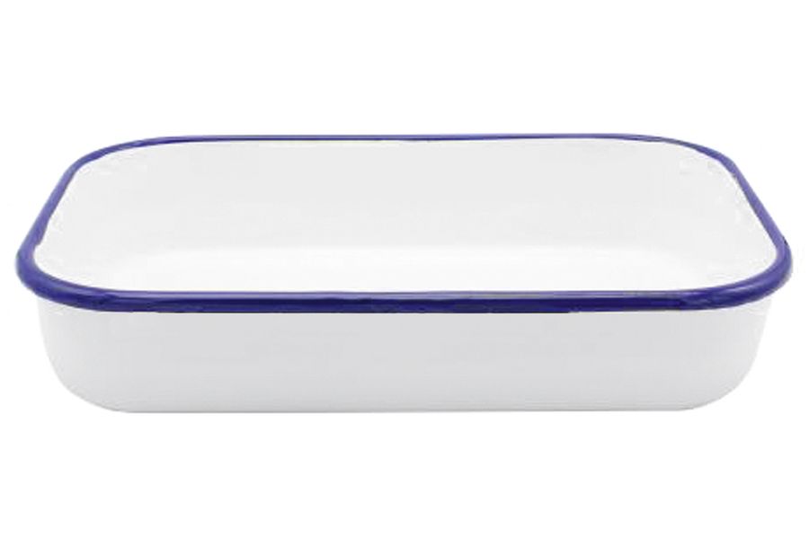 Farbausführung: außen und innen weiß mit blauem Rand, backofenfest bis 250°C, schnitt- und kratzfeste Oberfläche, vielseitig verwendbar: zum Backen, Grillen, für Quiche, Lasagne, Aufläufe, Kuchen u.v.m., leicht und mühelos zu reinigen, spülmaschinengeeignet, jeder Artikel mit Farbeinleger und in Folie eingeschweißt·weiß/blau 1,4 L, (LxBxH): 23x16x5 cm
