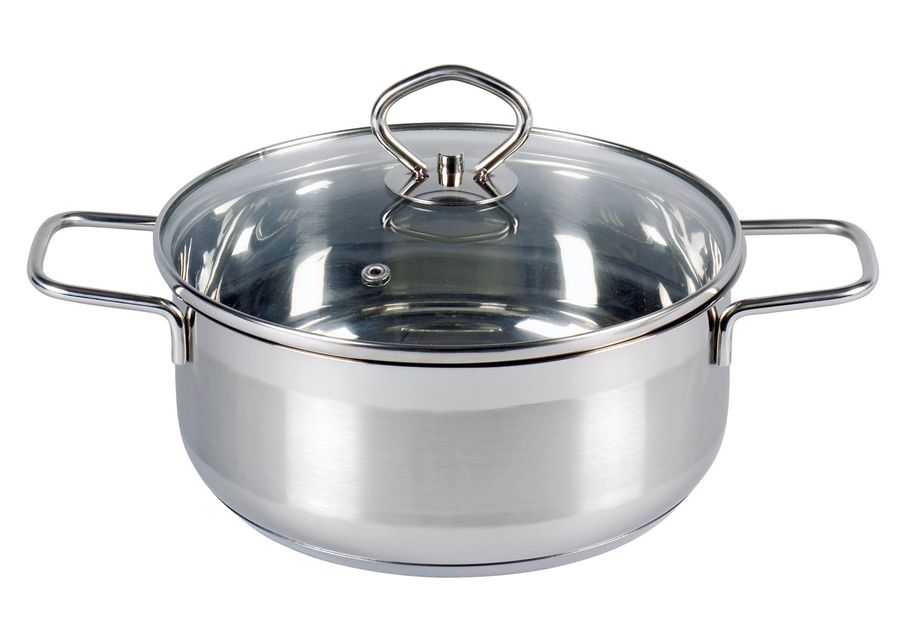 Edelstahl rostfrei, Materialstärke 0,5 mm, mit satiniertem Dekorband und Edelstahl-Rand, Glasdeckel mit Lüftungsloch, 3 mm Kapselboden, Edelstahl-Griffe, spülmaschinenbeständig, für alle Herdarten inkl. Induktion geeignet· 1,3 l, Ø 16 cm