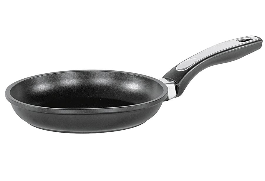 Aluguss, mit Antihaft-Versiegelung, Materialstärke ca. 2,3 mm, Bodenstärke ca. 5 mm, Kunststoffgriff, backofenfest bis 180°C, spülmaschinenbeständig, für alle Herdarten inkl. Induktion geeignet· Ø 24 cm, H 4,5 cm