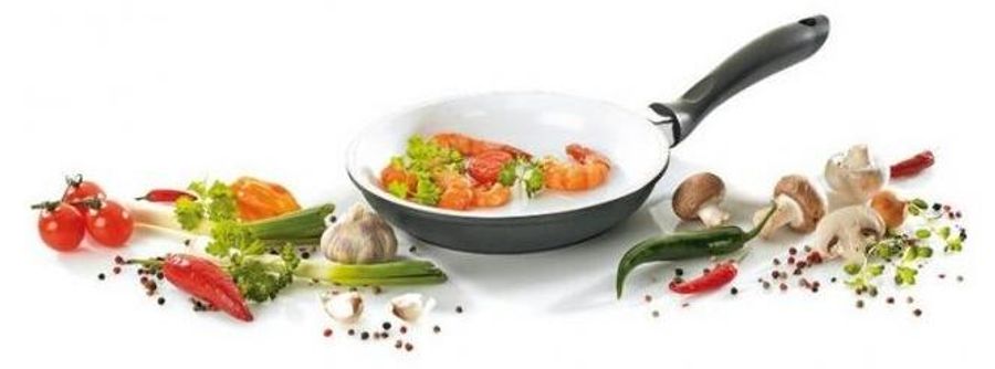 Aluguss, CERAMIK-Beschichtung, Kunststoffgriffe bis 180°C hitzebeständig, hohe Kratz- u. Temperaturbeständigkeit, PTFE frei, leicht zu reinigende Oberfläche, ergonomischer Pfannengriff, für alle Herdarten inkl. Induktion geeignet· Ø 20 cm, H 4 cm