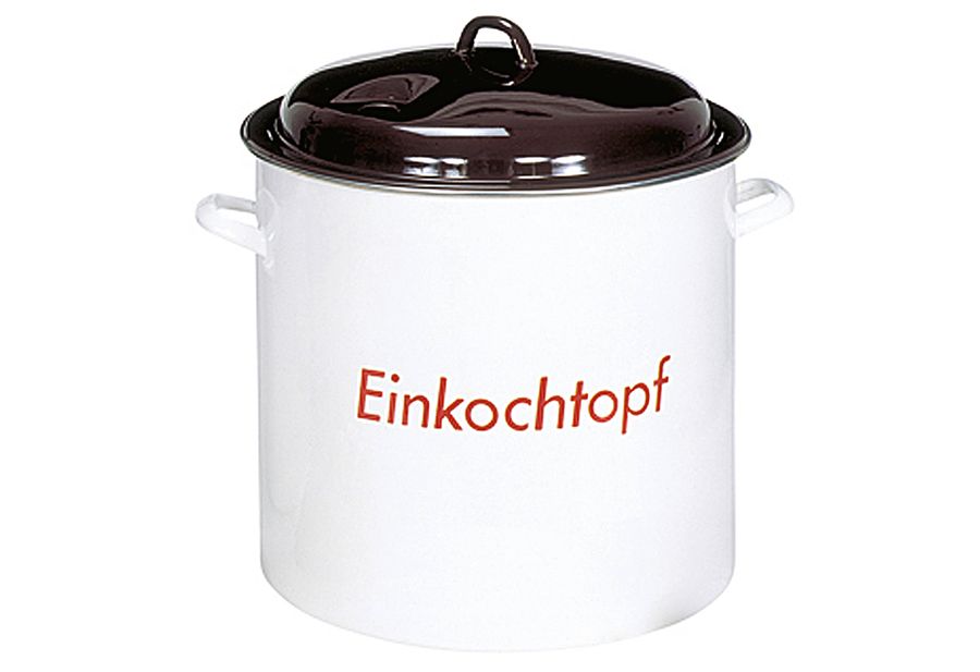 emailliert, mit Metalldeckel, Öffnung für Thermometer im Deckel, für 14 Gläser à 1 Liter, für alle Herdarten inkl. Induktion geeignet, Lieferung ohne Thermometer· 27 l, Ø 35 cm, H 37 cm