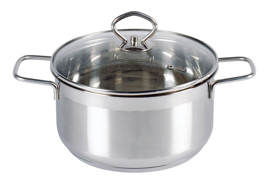 Edelstahl rostfrei, Materialstärke 0,5 mm, mit satiniertem Dekorband und Edelstahl-Rand, Glasdeckel mit Lüftungsloch, 3 mm Kapselboden, Edelstahl-Griffe, spülmaschinenbeständig, für alle Herdarten inkl. Induktion geeignet· 1,7 l, Ø 16 cm