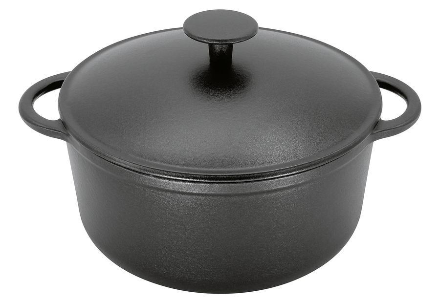 Gusseisen emailliert, innen und außen schwarz matt, Boden glänzend, schwere Qualitätsausführung, gleichmäßige Hitzeverteilung, langanhaltende Wärmespeicherung, für alle Herdarten geeignet·schwarz 4 l, Ø 24 cm, H 11,8 cm