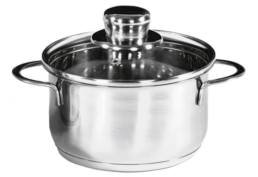 Edelstahl rostfrei, außen hochglanzpoliert, innen matt, Glasdeckel mit Edelstahlrand und Abdampfventil, wärmeabweisende Kaltmetallgriffe, Kapselboden 3 mm, für alle Herdarten inkl. Induktion geeignet, mit Glasdeckel, spülmaschinenfest 1 l, Ø 12 cm