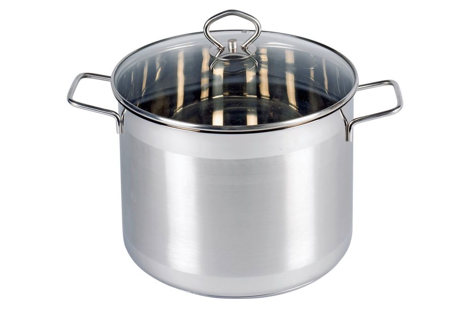 Edelstahl rostfrei, Materialstärke 0,5 mm, mit satiniertem Dekorband und Edelstahl-Rand, Glasdeckel mit Lüftungsloch, 3 mm Kapselboden, Edelstahl-Griffe, spülmaschinenbeständig, für alle Herdarten inkl. Induktion geeignet 7 l, Ø 24 cm