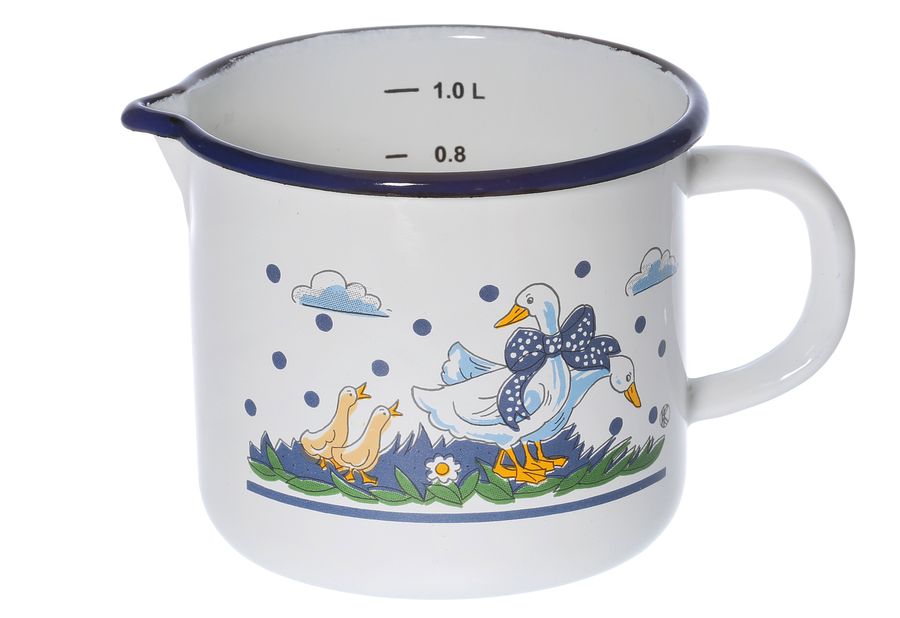 KARL KRÜGER Milchtopf Gänseglück mit Ausguss 1,5 l Ø14cm emailliert