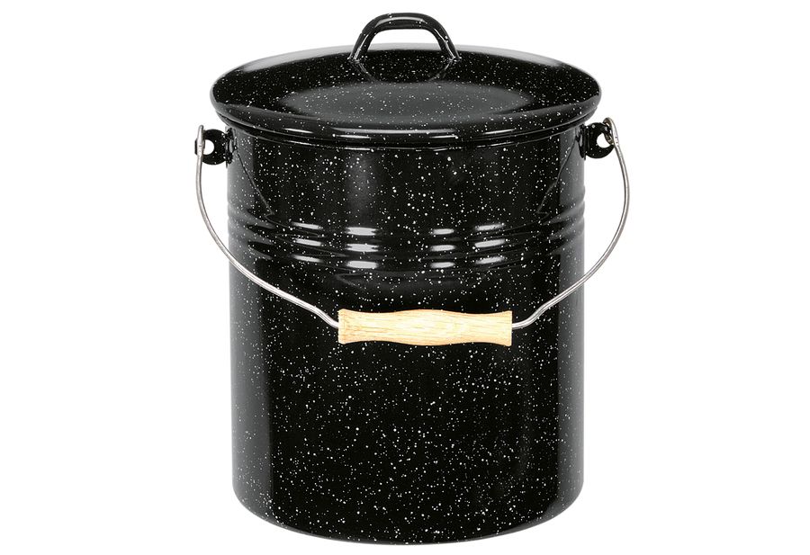 Stahlemaille, handlicher Tragegriff mit Holzrolle, schnitt- und kratzfeste Oberfläche, leicht und mühelos zu reinigen·schwarz-weiß gesprenkelt 3 l, (LxBxH): 16x16x21 cm