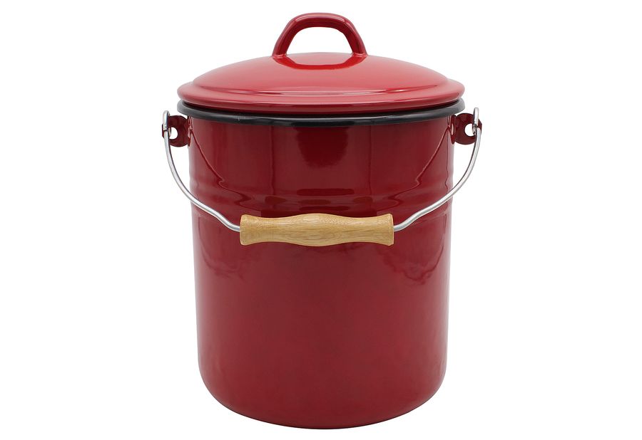 KARL KRÜGER Mülleimer mit Deckel Emaille 3l rot