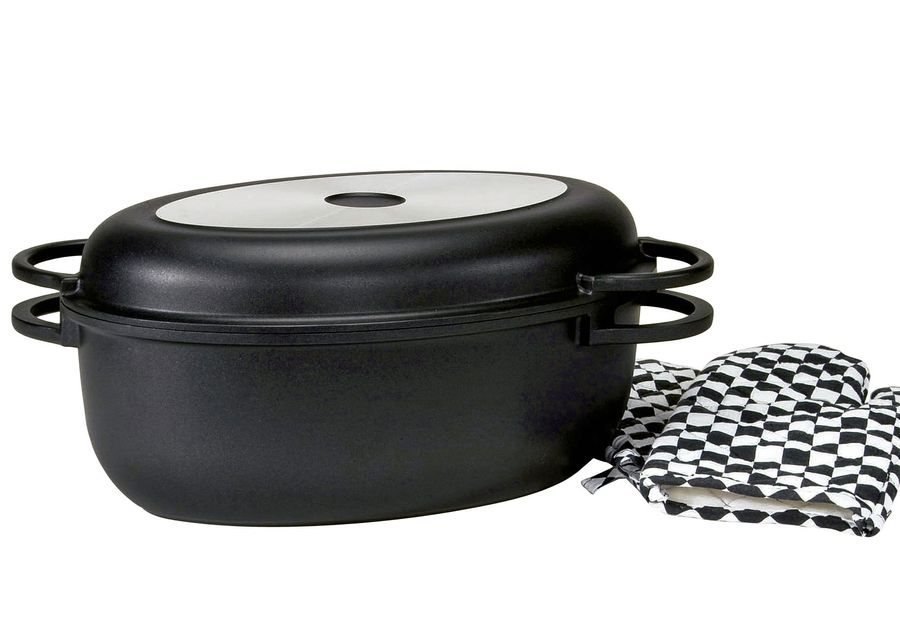 KARL KRÜGER Multibräter Leipzig 8 l 38x27x13,5cm Aluguss inklusive 1 Paar Handschuhe