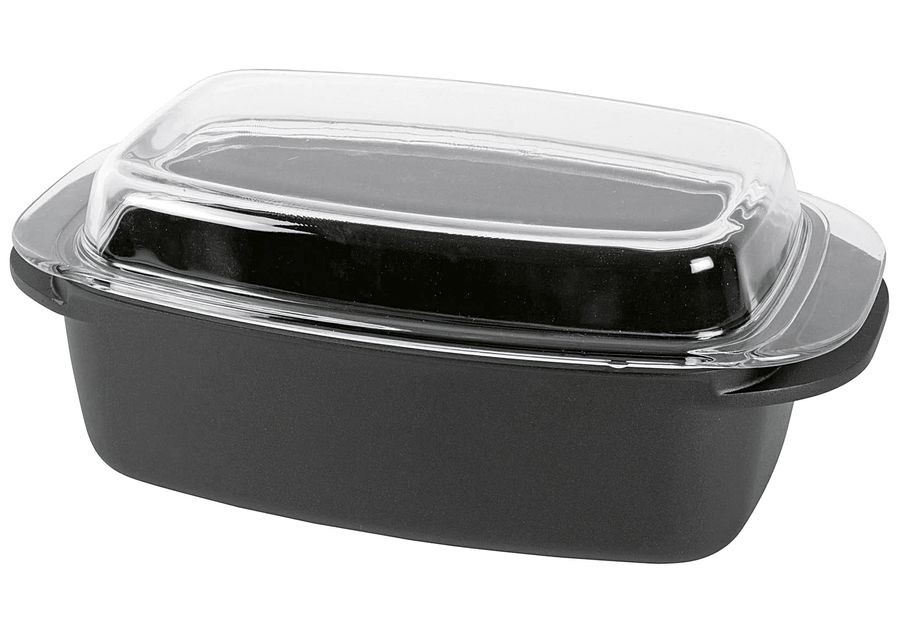 Aluguss, mit Glasdeckel, Bodenstärke ca. 5 mm, Materialstärke ca. 2,2 mm, schwere Qualitätsausführung, backofenfest bis 180°C, nicht induktionsgeeignet·schwarz 6 l, (LxB): 33x21 cm
