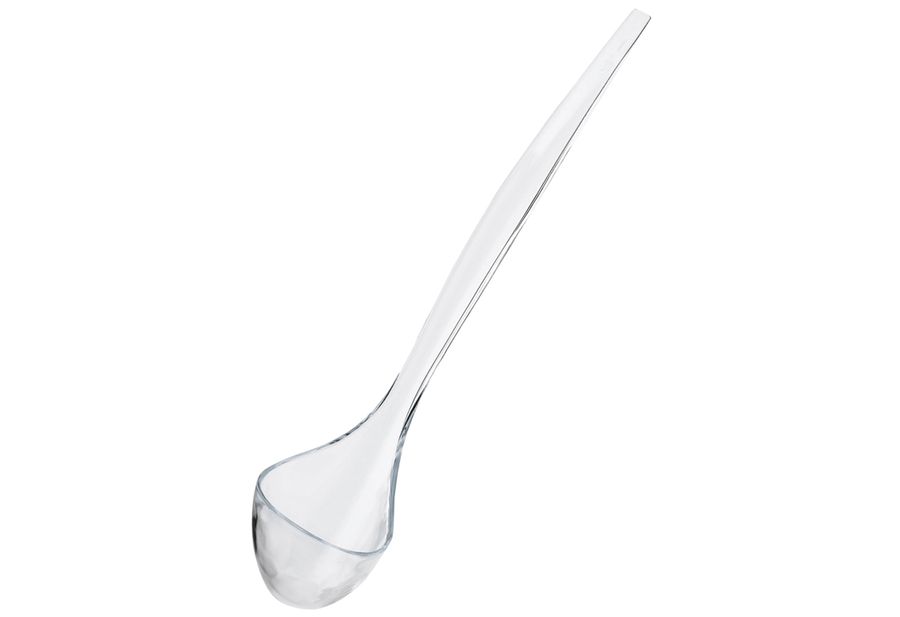 Kunststoff (SAN), wirkt als wäre er aus Glas, für Bowle oder Punsch, mit langem Stiel, schmale und tiefe Schöpfkelle·transparent (LxBxH): 34x9,5x7 cm