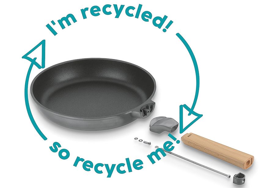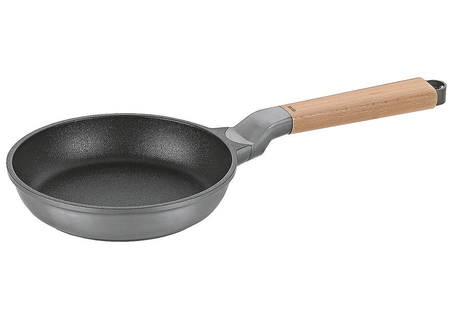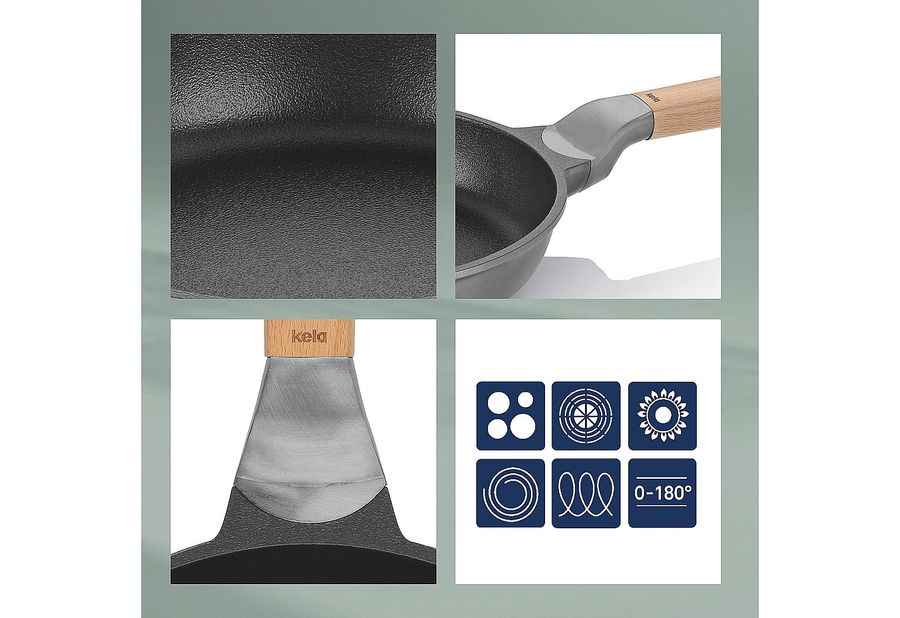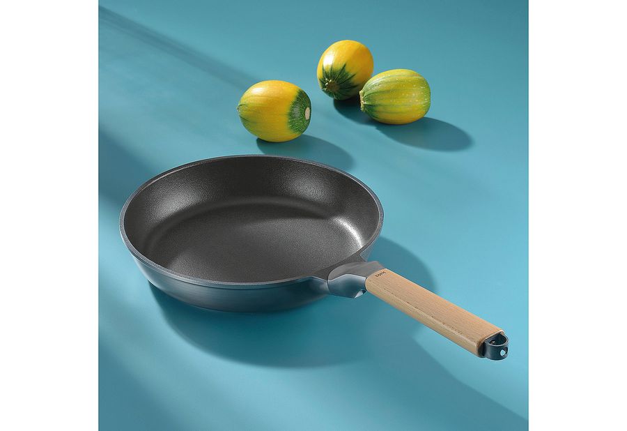 Aluguss aus recyceltem Aluminium, vollständig recyclebar, hochwertige Antihaftbeschichtung ILAG Ultimate HL, liegt gut in der Hand durch den ergonomischen, austauschbaren Buchenholz-Griff, geeignet für alle Herdarten inkl. Induktion·grau Ø 28 cm, H 6 cm
