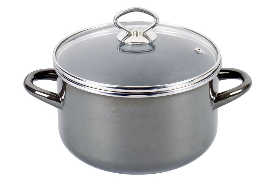 Stahlemaille, Diamant-Glasur-Clean, praktischer, gerundeter Rührboden, Klarsicht-Glasdeckel, hitzebeständig und bruchsicher, Vollkontakt-Thermoboden, Sichtkochen spart Energie und schont Vitamine, leicht zu reinigen, Antihaft-Eigenschaft, ideal für Allergiker, für alle Herdarten inkl. Induktion geeignet·schwarz metallic 2 l, Ø 16 cm