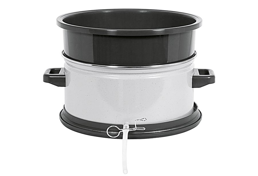 Kunststoff / Emaille, die ideale Ergänzung zur Saftgewinnung, mit Adapterring als Aufsatz für Kochstar-Einkochautomaten, Entsafterkorb und Adapterring aus hochwertigem Kunststoff, Saftauffangbehälter koch-, laugen- und säurefest emailliert