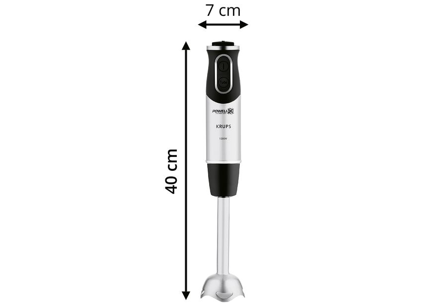 Pulsfunktion, 20 Geschwindigkeitseinstellungen, abnehmbarer Edelstahl Fuß, mit Becher 800 ml, Zerkleinerer 500 ml, mit Schneebesenaufsatz, Zubehör spülmaschinengeeignet, Leistung 1000 Watt