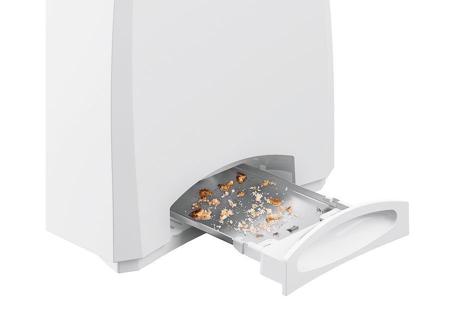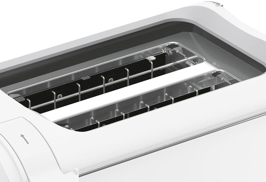 elektronische Bräunungsgradkontrolle mit 6 Bräunungsstufen, inkl. Aufknusper- und Stoppfunktion, 2 Toastschlitze, Variotechnik (zentriert Brotscheiben ihrer Dicke entsprechend), Hebe-Funktion zur sicheren Entnahme kleiner Brotscheiben, integrierter Brötchenaufsatz, automatische Abschaltung bei Verklemmen einer Brotscheibe, Krümelschublade, wärmeisoliertes Gehäuse, 700 Watt, Schukostecker CEE 7/7·weiß