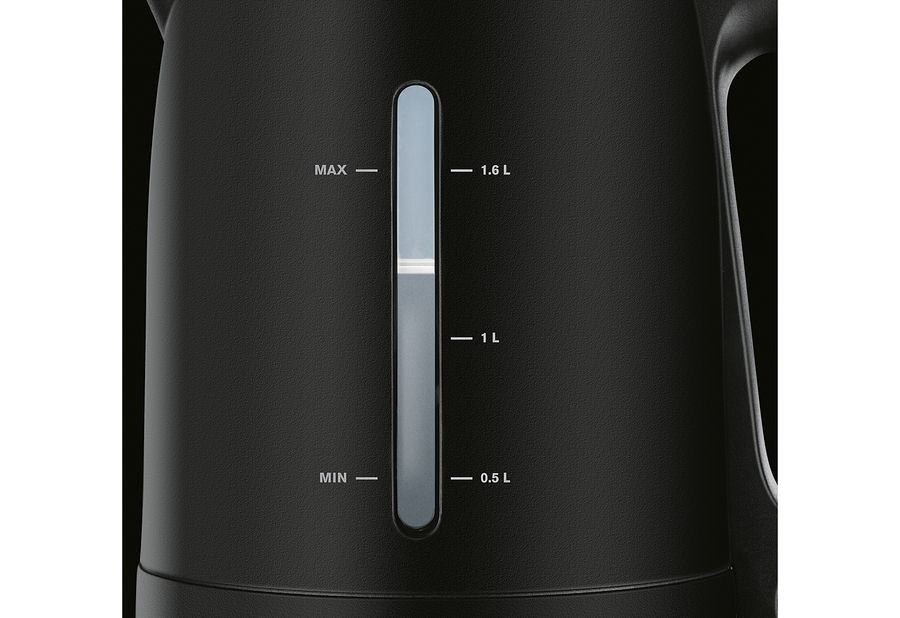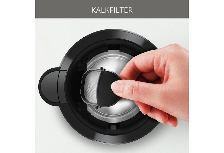 Fassungsvermögen: 1,7 l, Kombination von matten und glänzenden Elementen, Sicherheitsdeckel mit 2 Positionen: Lock / Open, abgedecktes Heizelement zur einfachen Reinigung, 360° Zentralkontakt, herausnehmbarer Anti-Kalk-Filter, 2 außen liegende Wasserstandsanzeigen, blau beleuchteter Ein- / Ausschalter, Kabelfach, 2200 Watt, Schukostecker CEE 7/7·schwarz