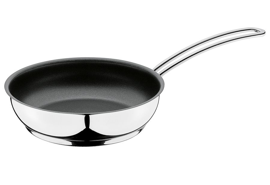 Edelstahl rostfrei, extra starker Mehrschichtboden, hochwertige Antihaftbeschichtung, geeignet für alle Herdarten inkl. Induktion, Pflegehinweise innenliegend H 4,8 cm, Ø 18 cm·Fachhandel exklusiv