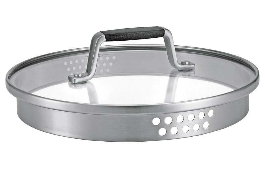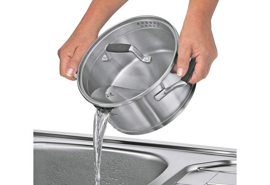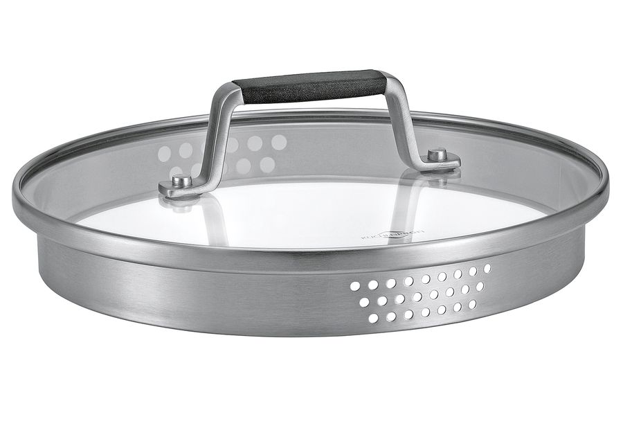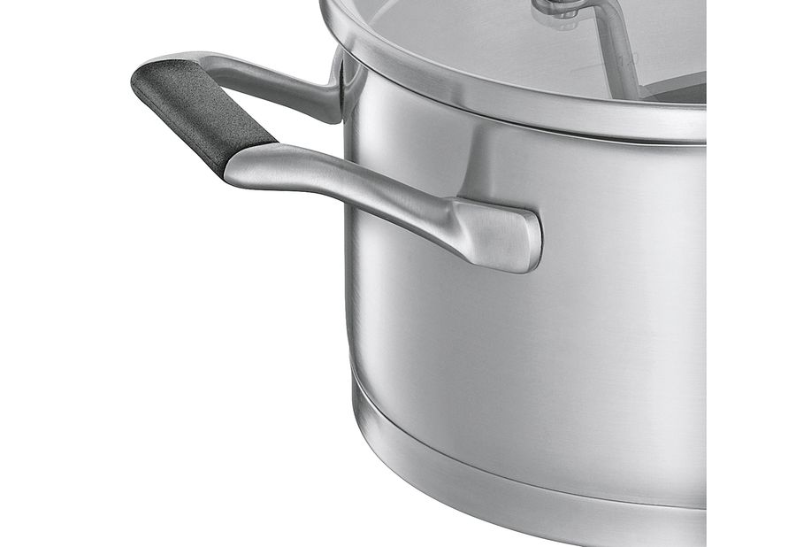 Edelstahl rostfrei / Glas, Topf mit praktischem Ausgießer, extra starker Mehrschichtboden, Deckel aus Sicherheitsglas, inkl. feinem und, grobem Sieb, wärmeisolierende, silikonummantelte Griffe, mit praktischer Innenskala, für alle Herdarten inkl. Induktion geeignet 6,7 l, H 14,5 cm, Ø 24 cm·Fachhandel exklusiv