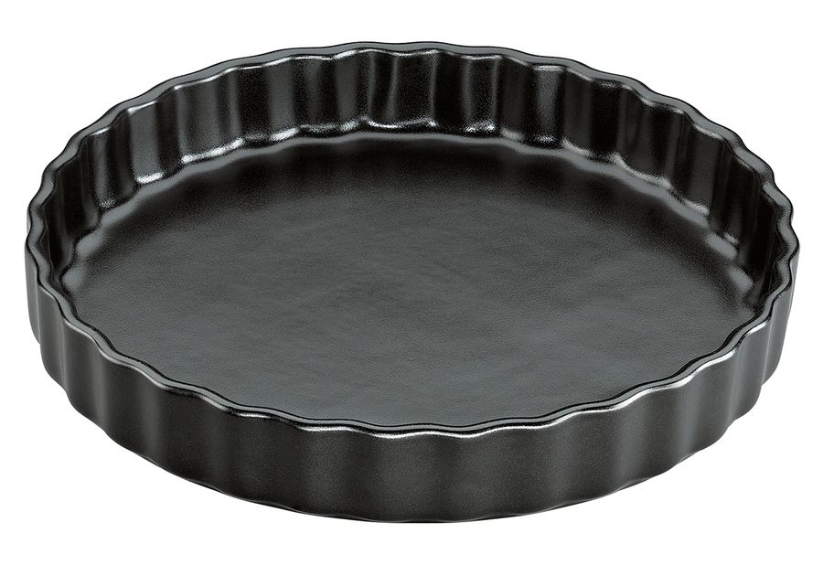 Keramik, 4 in 1: Garen, Servieren, Aufwärmen, Aufbewahren, temperaturwechselbeständig von -20°C bis 260°C, für Mikrowelle, Kühlschrank und Gefrierschrank geeignet·schwarz 1,37 kg, Ø 27,5 cm, H 4,2 cm·Fachhandel exklusiv·