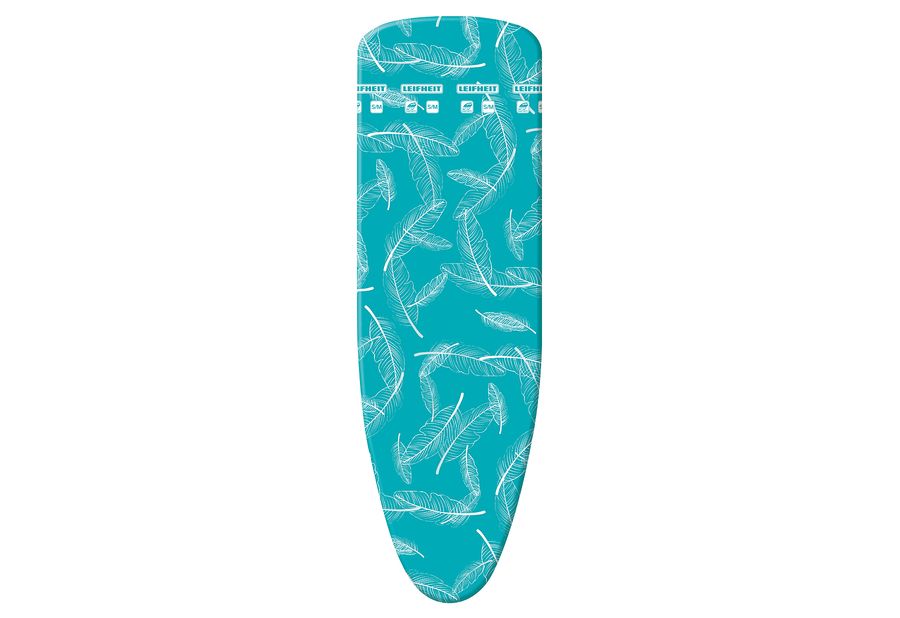55% Polyester / 29% Baumwolle / 8% Polyurethan / 8% Titanium, verkürzte Bügelzeit durch Zwei-Seiten-Bügeleffekt dank Thermo-Reflect-Technologie, 4 mm starke Molton-Komfortauflage, elastischer Schnürzug und Spannclip, Easy-Fit-Klettfixierung: kein Verrutschen und jederzeit straffer Bezug, schadstofffrei, passend für Bügelbretter und -tische bis zu einer Größe von 125 x 40 cm, geeignet für Dampfbügeleisen (LxB): 125x40 cm