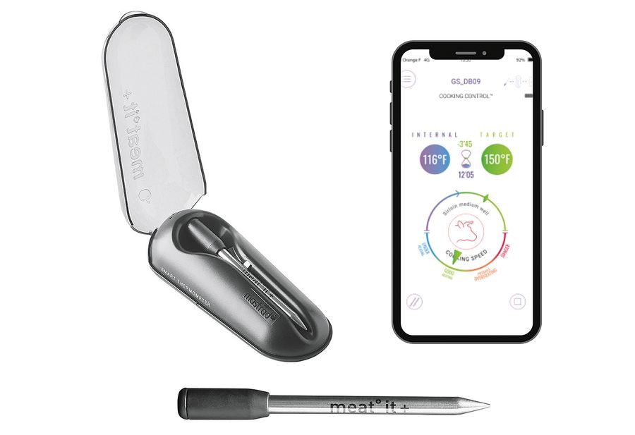 ABS-Kunststoff / Inox, Überwachung von Innentemperatur und Gargeschwindigkeit, widerstandsfähig gegen extreme Temperaturen, präziser Temperaturbereich, einfach zu starten - automatische Abschaltung, Mastrad App warnt bei Unterkochen, Überkochen, Anbrennen, überwacht mehrere Fühler, erhöhte Reichweite: Bluetooth-Repeater in der Dockingstation (bis zu 30 Meter Reichweite), geliefert mit 2x AAA-Batterien, 100 % drahtlose Sonde mit Bluetooth, kompatibel mit iOS / Android, hitzebeständig von -30°C bis 400°C·silber (LxBxH): 14,3x3,8x5,8 cm
