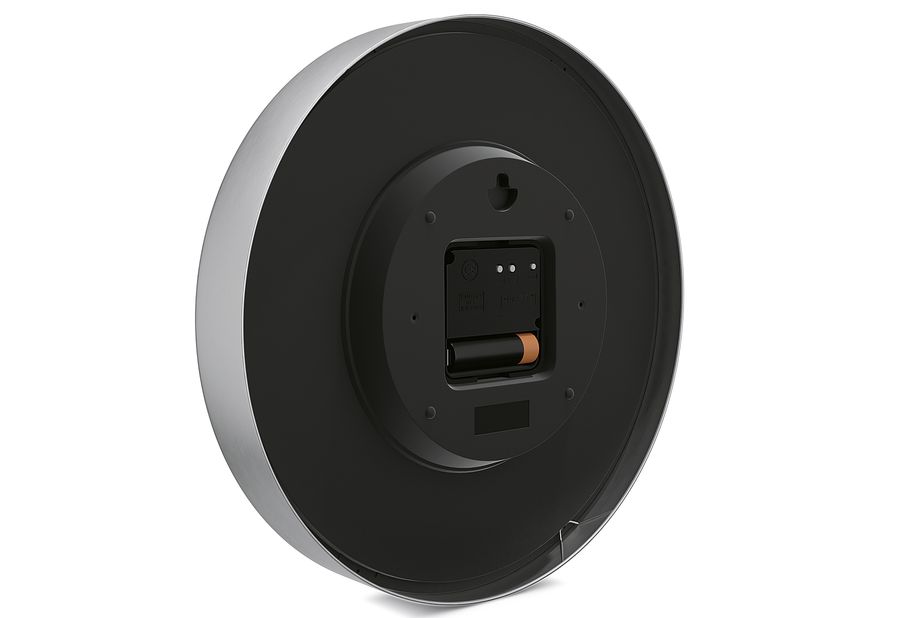 Funkwanduhr mit Thermo- und Hygrometer, Präzises Funkuhrwerk, Anzeige der Innentemperatur in °C und Innenluftfeuchtigkeit in %, Leiseganguhrwerk – Kein Tick/Tack Geräusch, Gehäusefarbe: Silber, Zifferblattfarbe: Schwarz, Ø 25 x 25 x 5 cm·silber Ø 25 cm