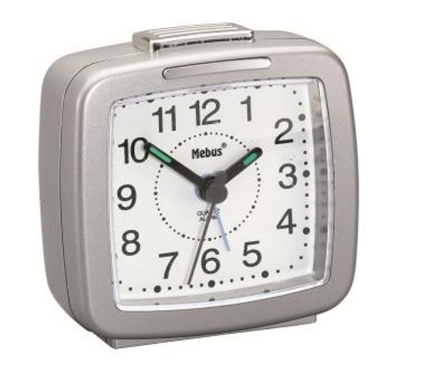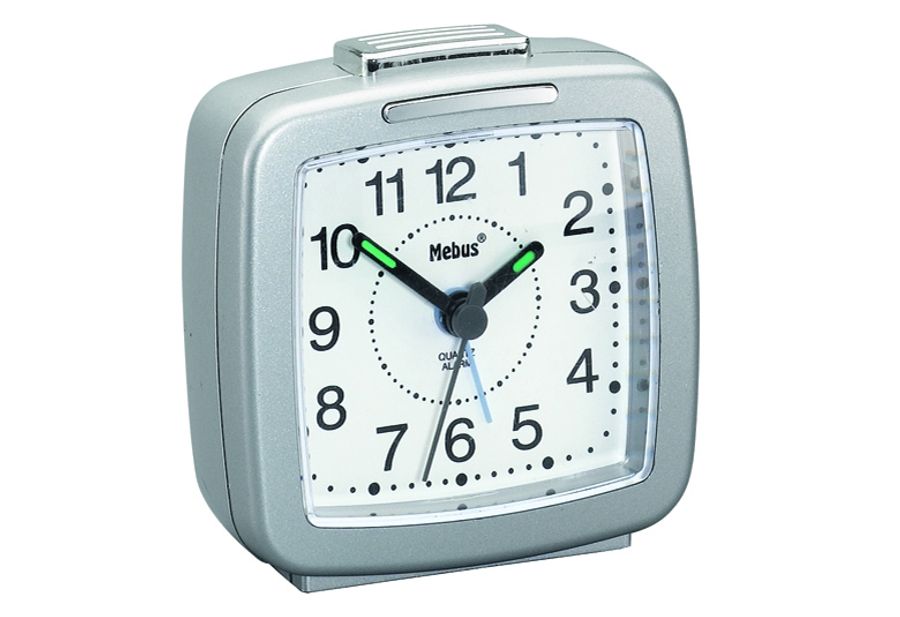 MEBUS Quarzwecker 26481 mit Beleuchtung silber