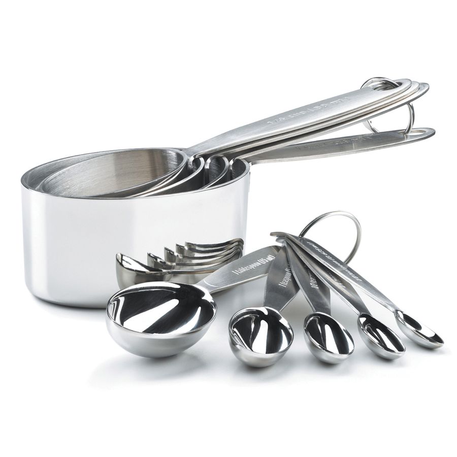 Edelstahl-Messlöffelset 1/8,1/4,1/2 und 1 Teelöffel-, sowie ein Esslöffelmaß. Das perfekte Geschenk! Ein Geschenkset aus 5 Edelstahl-Messlöffeln. Das glatte ovale Design mit langen Griffen reicht bequem in jedes Gewürzglas oder in große Behälter. Jedes ineinander setzbare Löffelset enthält einen praktischen Aufbewahrungsclip, um es zusammenzuhalten. Die dicken, flachen Ränder machen es einfach, die Löffel mit einem Messer abzustreifen. Die leicht gebogenen Griffe stellen sicher, dass die Löffel sicher auf der Arbeitsplatte liegen ohne umzukippen. Spülmaschinengeeignet. US PATENT NR. D439175. Diese Messhelfer sind für jede Küche unentbehrlich. Strapazierfähiges Design, das dem Druck beim Löffeln in einen Behälter mit braunem Zucker oder Mehl Stand hält. Hergestellt aus dem härtesten erhältlichen Edelstahl.