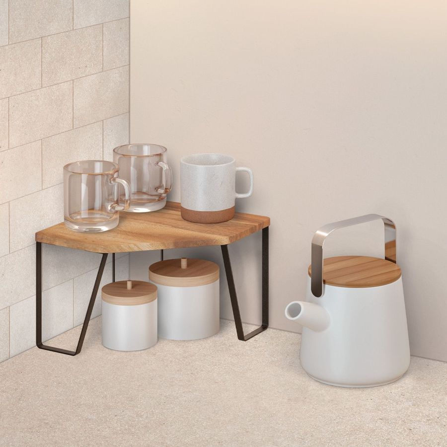 geöltes Akazienholz / Metallfüße mit Touch-Therm-Beschichtung, rutsch- und kratzfest, einfach aufzubauen, Montagematerial inklusive·schwarz / natur (HxBxT): 25x25x16 cm