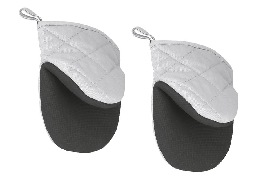 Außen: Baumwolle und Gummi - Innen: Polyester. Wiederverwendbar, nur für den Hausgebrauch, Einheitsgröße. Schützt die Handfläche vor Hitzekontakt mit heißen Oberflächen (Pfannen, Backformen, usw.). Vorsichtig und nur für kurze Momente verwenden. Schützt nicht vor Schnitten, Schürfungen oder Einstichen. Nicht in direkten Kontakt mit Flammen kommen. Nicht geeignet für Lebensmittelkontakt. Hitzebeständig bis max. 250°C.·grau / schwarz L 33,8 cm