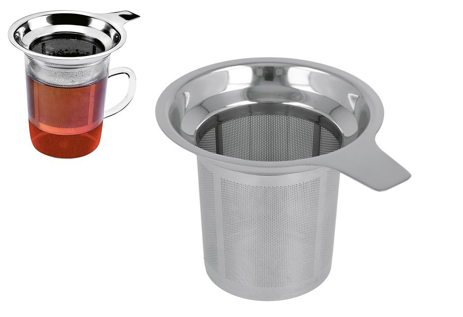 Inox mit gelasertem und extrem feinem Inox-Filter, lebensmittelecht, spülmaschinenfest und leicht zu reinigen, mit praktischem Tragegriff, für Teekannen· Ø 8,5 cm, H 7,5 cm