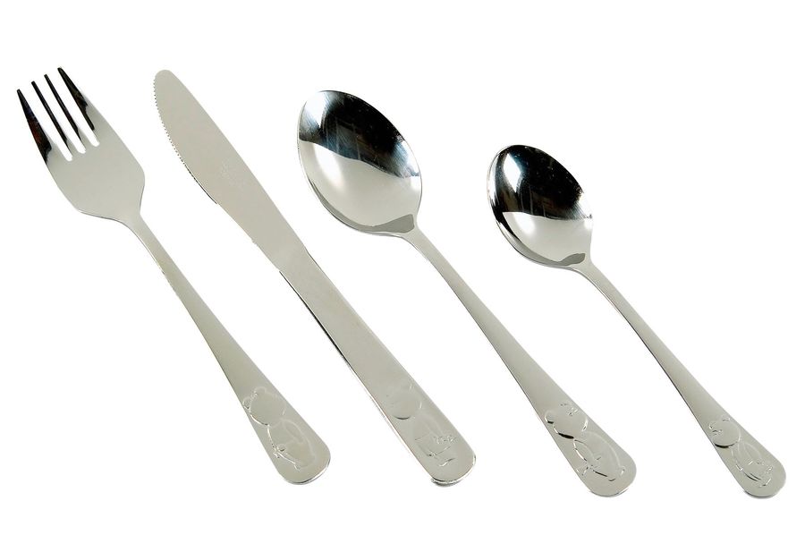 Edelstahl rostfrei, Inhalt: 1 x Messer 16,5 cm, 1 x Gabel 15 cm, 1 x Teelöffel 13 cm, 1 x Löffel 14,5 cm