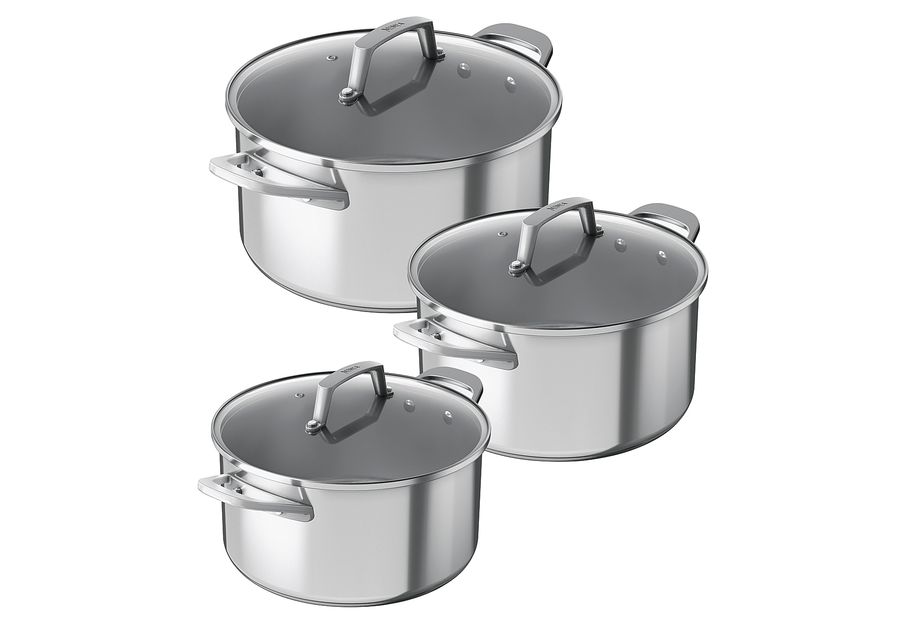 NINJA Topfset 3teilig Edelstahl mit Glasdeckeln (ø 16cm, ø 18cm, ø 20cm)