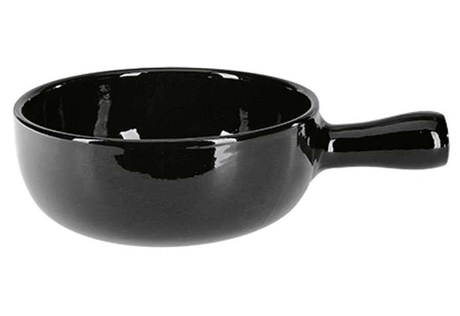 Terracotta, Glasur schwarz glänzend, Füllmenge 1,7 Liter, runder, halbhoher und dickwandiger Topf mit Stiel, für die Zubereitung von Käsefondue, Made in Italy·schwarz 1,7 l, Ø 22 cm, (LxBxH): 29,5x25x11 cm