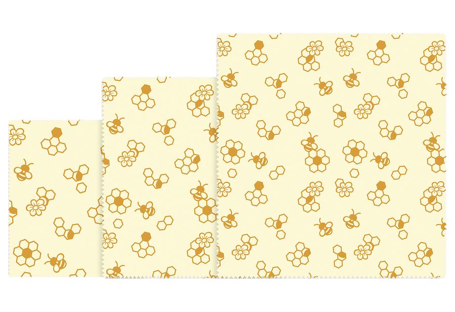 organische Baumwolle / Bienenwachs / Kokos Öl / Baumharz, mit Honigwaben-Muster, Inhalt: je 1 x (LxB): 18x20 cm, 25x28 cm, 33x35,5 cm, wiederverwendbar (bis zu einem Jahr), biologisch abbaubar und nachhaltig, perfekt um Brote, Gebäck, Gemüse, Früchte, Käse, Beeren und Reste einzupacken, nicht geeignet für rohes Fleisch und rohen Fisch, zum Reinigen einfach mit handwarmem (max. 40° C) Wasser abspülen