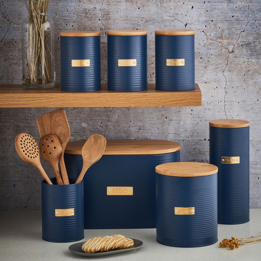 Vorratsbehälter der Otto Kollektion - diese elegante Vorratsdose kombiniert edles navyblau mit Gold und verleiht deiner Küche eine ganz besondere Eleganz. Das strapazierfähige, beschichtete Material des Behälters und der Deckel aus Bambusholz lassen sich luftdicht miteinander verschließen. Das Holz kommt aus nachhaltiger Forstwirtschaft. Die Kollektion bewahrt und bevorratet deine trockenen Lebensmittel auf besonders stilvolle Weise - zeitlos und elegant.
