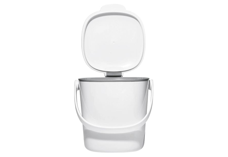 Kunststoff (ABS), (PP), für Arbeitsplatten, mit Klappdeckel, der mit einer Hand geöffnet und geschlossen werden kann·weiß 2,8 l, (BxHxT): 18x21x18 cm
