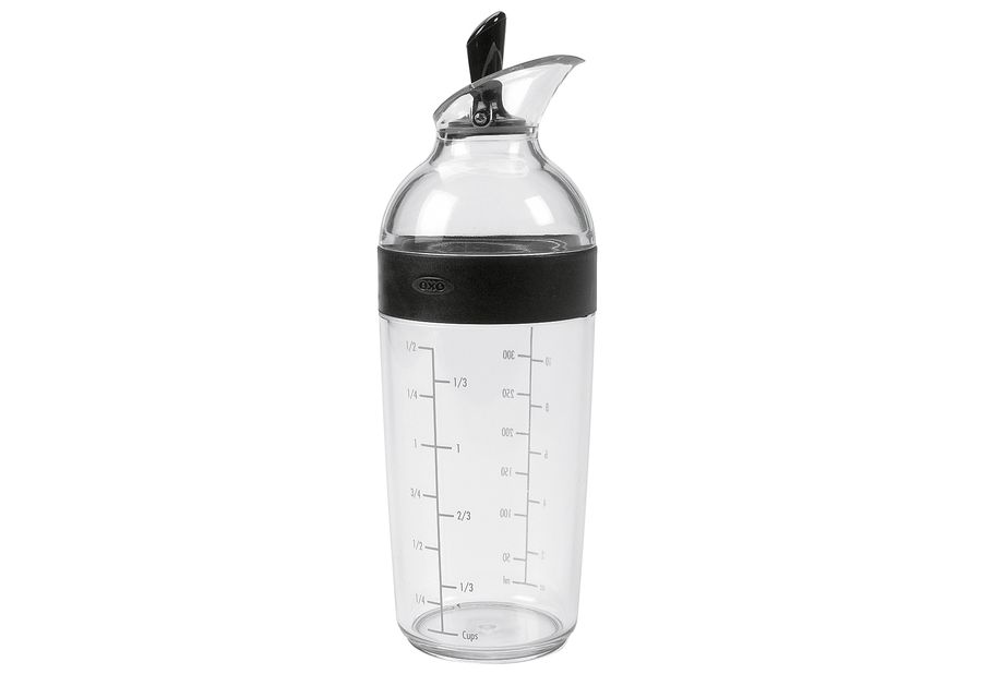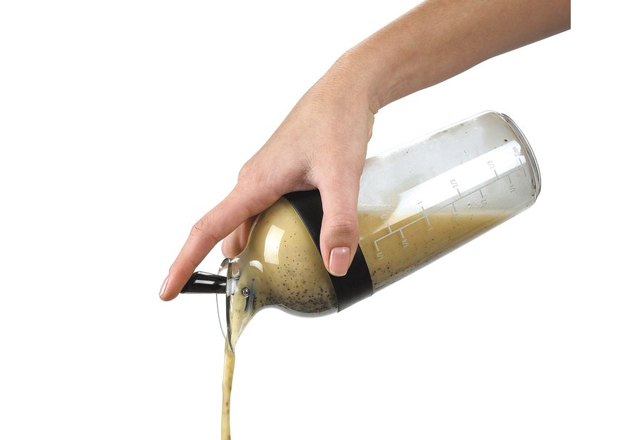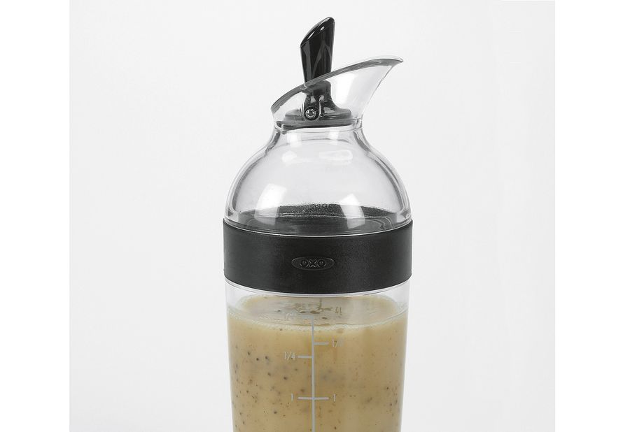 Tritan, wasserdicht, ideal für Mischen, Servieren und Aufbewahren von Dressings, Soßen und Marinaden, einhändig bedienbarer Hebel, kratzfest·transparent-schwarz 350 ml, (LxBxH): 6,3x6,3x22 cm