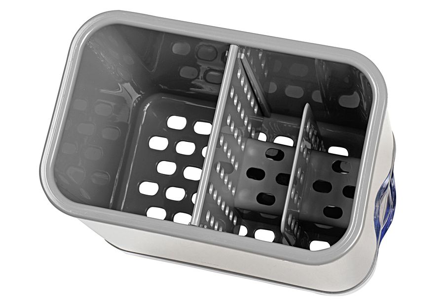 Edelstahl, inklusive Kunststoff-Tropfschale mit integriertem Ausguss, entnehmbare Trennwände für Fächer zur Unterbingung für Spülbürsten und Spülschwämmen (LxBxH): 14,2x9,6x13,9 cm