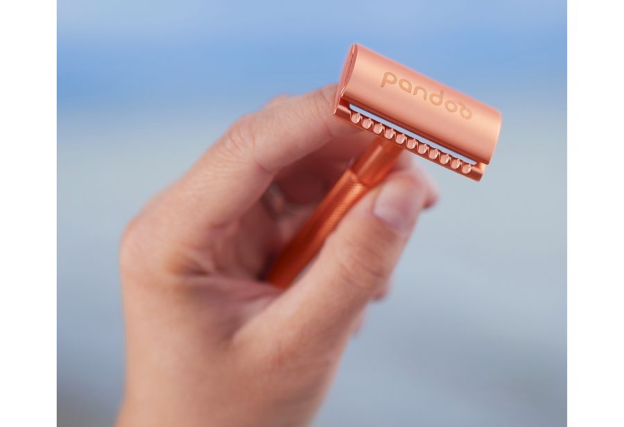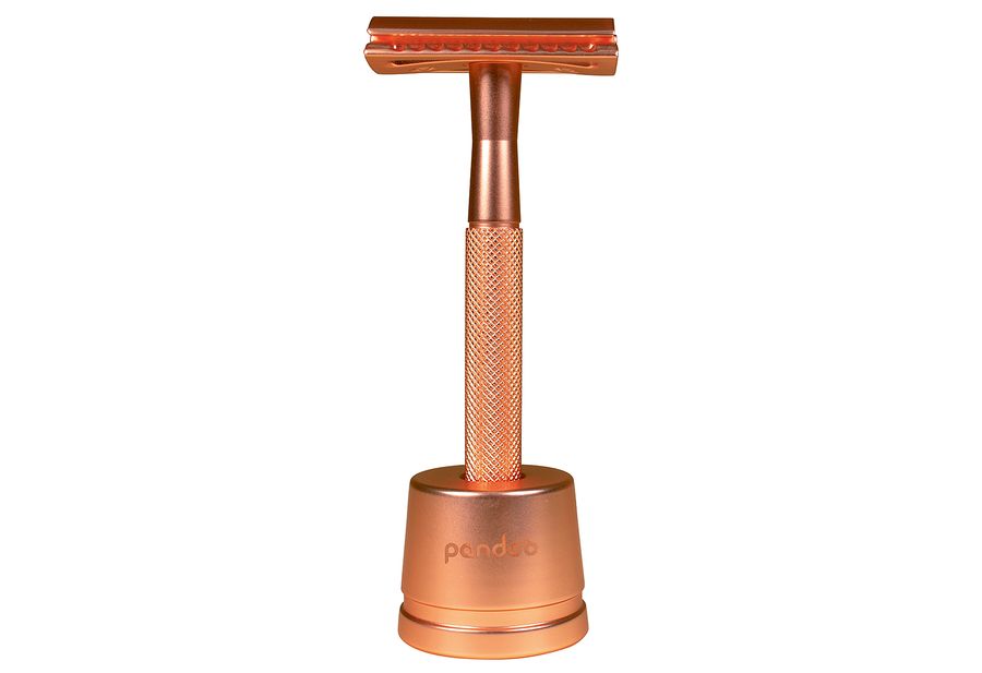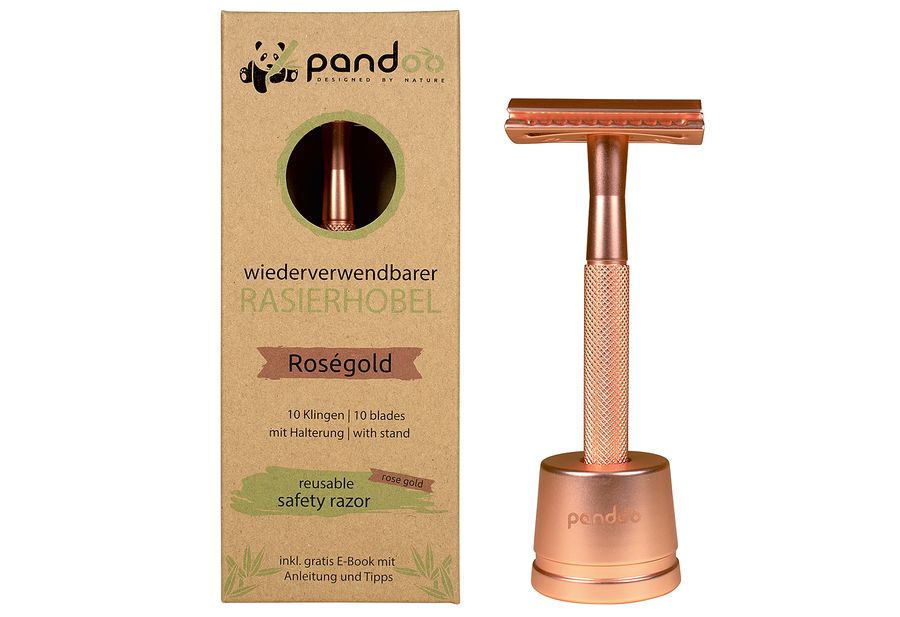 PANDOO Metall Rasierhobel inkl. 10 Klingen rosegold