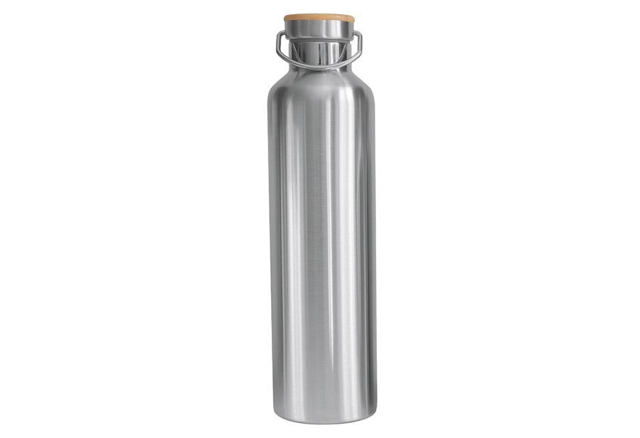 Edelstahl rostfrei / Bambus (Deckel) / Silikon (Dichtungsring am Deckel), isoliert, hält Getränke bis zu zwölf Stunden warm oder 24 Stunden kalt, auslaufsicher 1 l