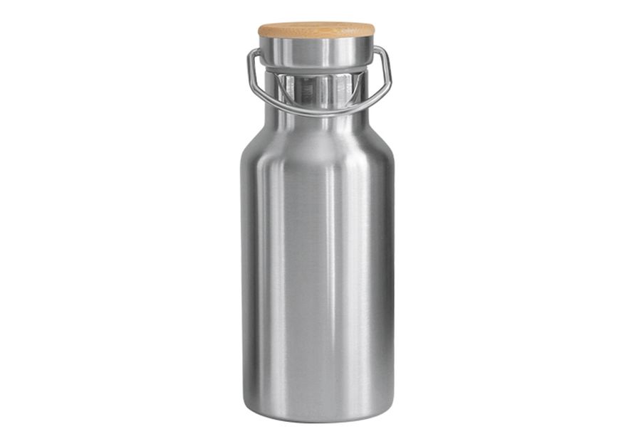 Edelstahl rostfrei / Bambus (Deckel) / Silikon (Dichtungsring am Deckel), isoliert, hält Getränke bis zu zwölf Stunden warm oder 24 Stunden kalt, auslaufsicher 350 ml