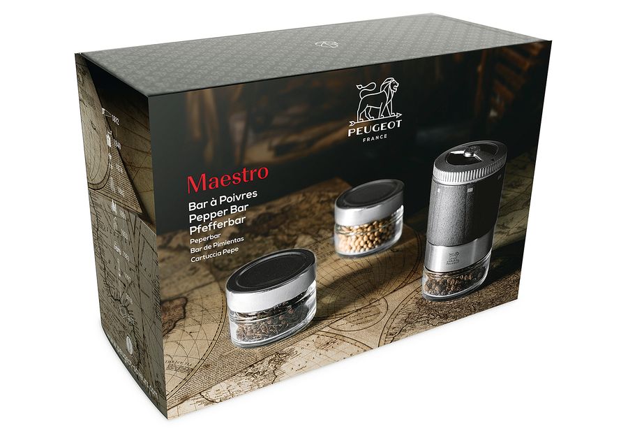 PEUGEOT MAESTRO Pfefferbar u'Select 11cm inkl. drei Premium-Pfeffergläsern graphit