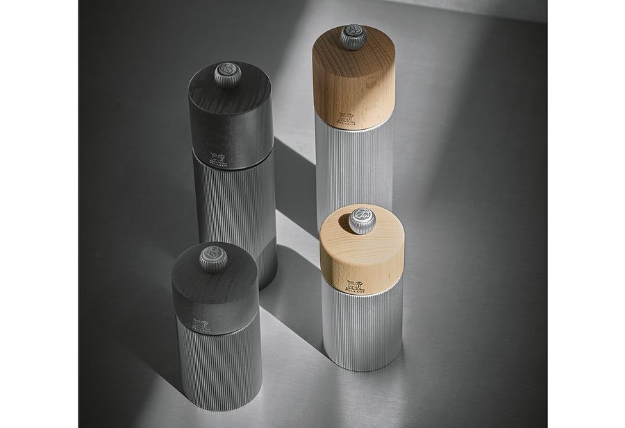 Aluminium / Buchenholz, Drehknopf auf der Oberseite ermöglicht eine simple Einstellung des Mahlgrads, je stärker dieser angezogen wird, desto feiner der Pfeffer (und umgekehrt), zum Mahlen von schwarzem, weißem, grünem oder rotem Pfeffer, rosa Beeren (maximal 15 % in einer Pfeffermischung) oder Koriandersamen - Gebrauchsfertig: Pfefferkörner liegen bei, eignet sich perfekt für den Einsatz zu Tisch·natur Ø 5,2 cm, H 18 cm·Fachhandel exklusiv