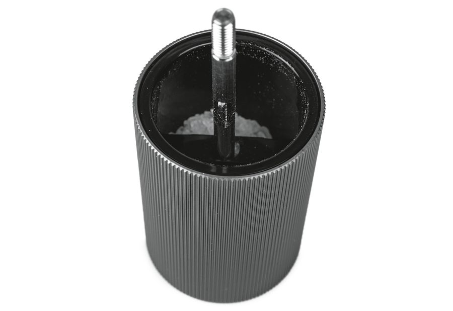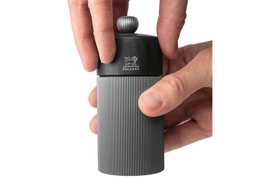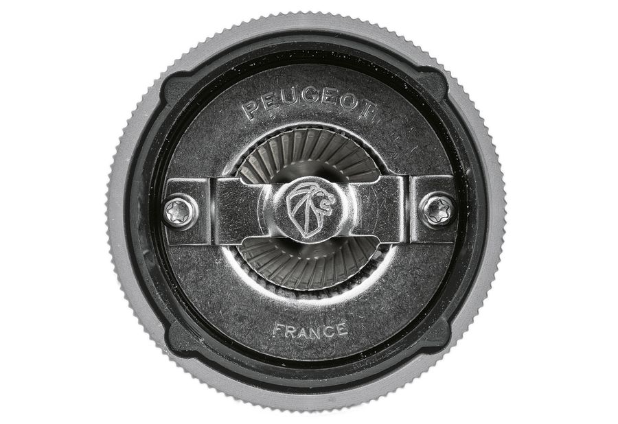 Mühlenkopf aus Buchenolz, gerippter Mühlenkörper aus Aluminium, mit dem berühmten Peugeot-Mahlwerk ausgestattet, Drehknopf auf der Oberseite mit dem Löwensymbol verziert und ermöglicht eine simple Einstellung des Mahlgrads, hergestellt in Frankreich, PEFC™-Holz aus französischen Wäldern - 25 Jahre Garantie in Deutschland auf das Mahlwerk, restliche Mühlenkomponenten mit Garantie von 5 Jahren, zum Mahlen von Trockensalz (Steinsalz) bis zu einer Größe von 4 mm, Einstellknopf für den Mahlgrad: Je stärker er angezogen wird, desto feiner das Salz (und umgekehrt), gebrauchsfertig: Salzkristalle liegen bei, nicht für feuchtes (oder getrocknetes) Meersalz geeignet·carbone / graphit Ø 5,2 cm, H 12 cm·Fachhandel exklusiv