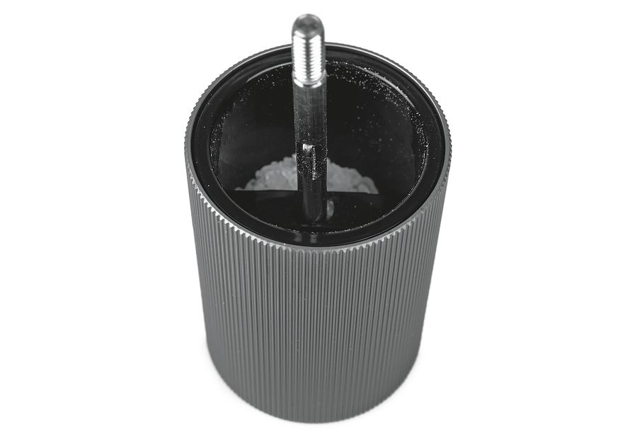 Aluminium / Buchenholz, spezielles Mahlwerk aus Edelstahl ist für Trockensalz (Steinsalz) bis zu einer Größe von 4 mm konzipiert, der Drehknopf ermöglicht eine einfache und effektive Mahlgradeinstellung (je stärker gedreht, desto feiner das Salz), optimal für den Einsatz auf dem Tisch, Gebrauchsfertig: Salzkristalle liegen bei - Nicht für feuchtes (oder getrocknetes) Meersalz geeignet·graphit Ø 5,2 cm, H 18 cm·Fachhandel exklusiv