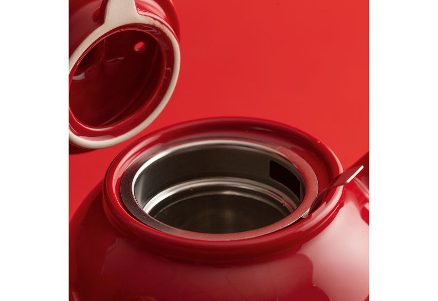 Steingut / Edelstahl-Teesieb, für 6 Tassen, spülmaschinenfest und mikrowellengeeignet·rot 1,1 l, (LxBxH): 20,8x14,7x18,9 cm