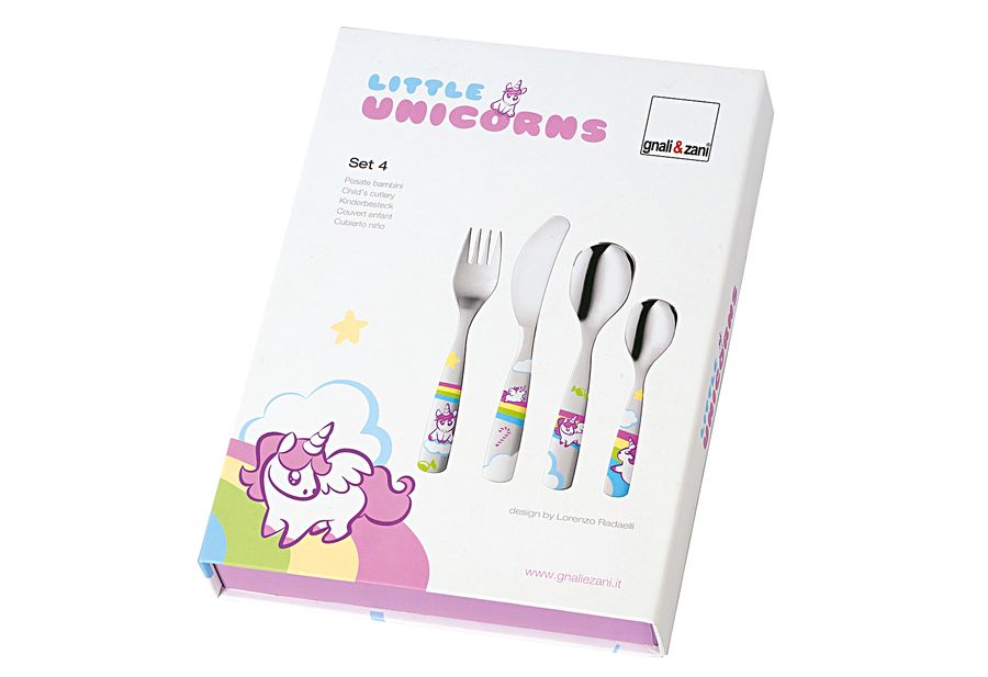 Edelstahl rostfrei, Inhalt: 1 Gabel 18,3 cm, 1 Messer 17 cm, 1 Löffel 16,5 cm, 1 Teeöffel 13,3 cm, ab 3 Jahren, nicht spülmaschinengeeignet, ergonomisch geformt, hochwertige Geschenkbox mit Magnetverschluss· ·Fachhandel exklusiv