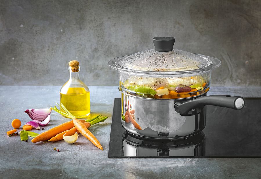 Borosilikatglas, passend für alle Töpfe mit gleichem Durchmesser, kratzfest, hält extremen Temperaturen von -40 °C bis + 300 °C stand, thermoschockbeständig bis 220°C, mikrowellen- und backofengeeignet, spülmaschinengeeignet Ø 20 cm, H 8 cm